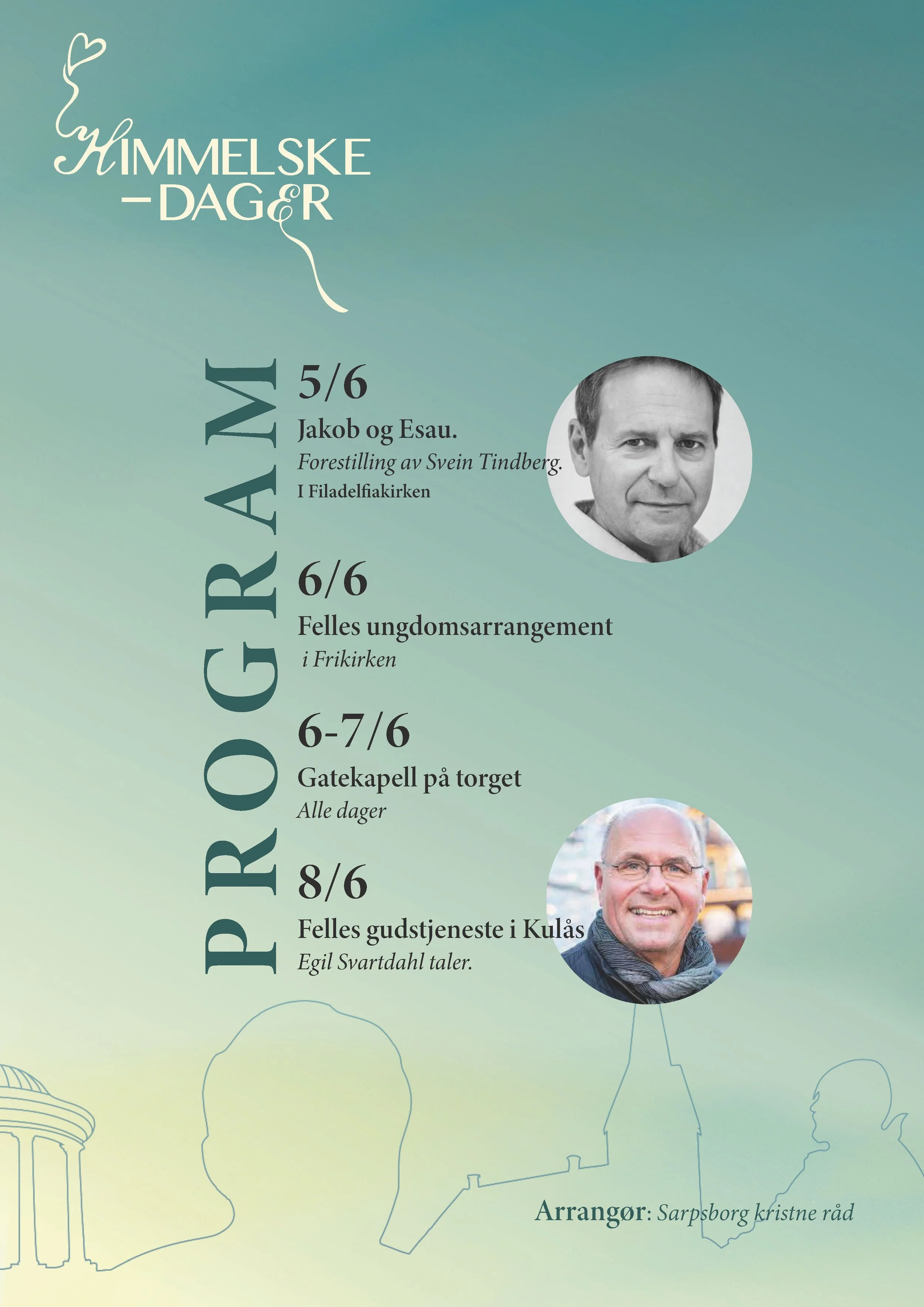 Tilbake til alle arrangementer Himmelske dager i Sarpsborg torsdag 5. juni 2025 19:00 søndag 8. juni 2025 12:30 Greåker Frikirke 2 Klevaveien Greåker, Viken, 1719 Norway (kart) Google Calendar ICS